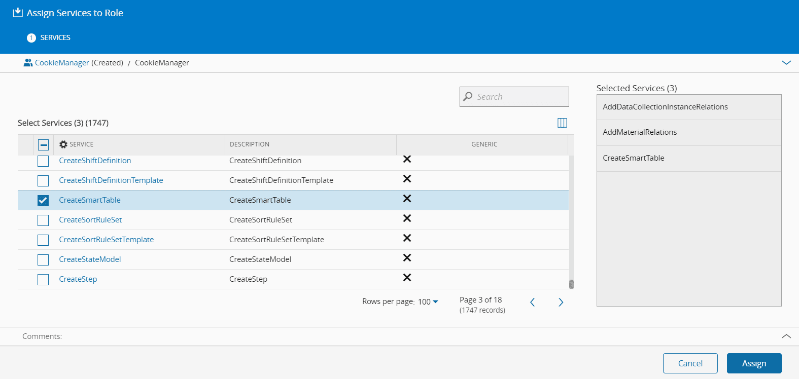 - Choose the Services you wish to unassign from the Role and select the Unassign button.