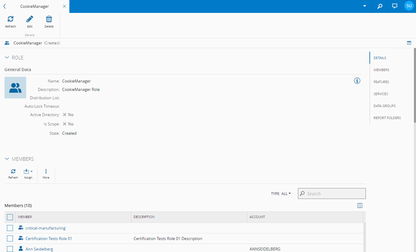 - Members - displays information on the Users or other Roles that belong to the Role.