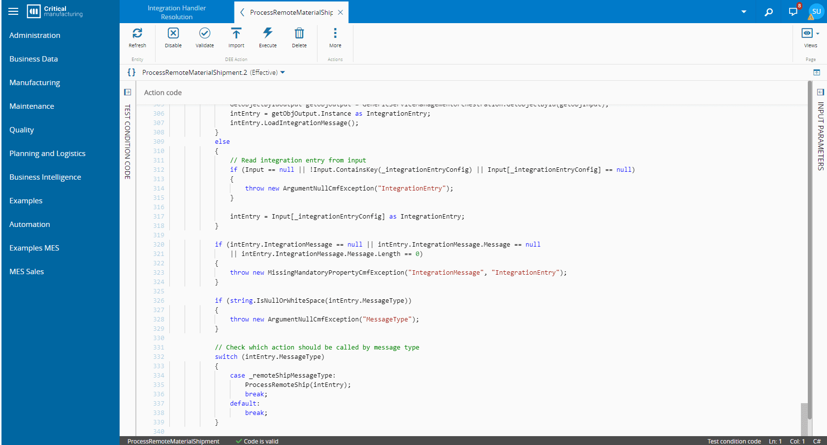 This integration package will be used for all integrations between Critical Manufacturing MES systems. For now, the product provides out-of-the-box Remote Material Shipment integration.