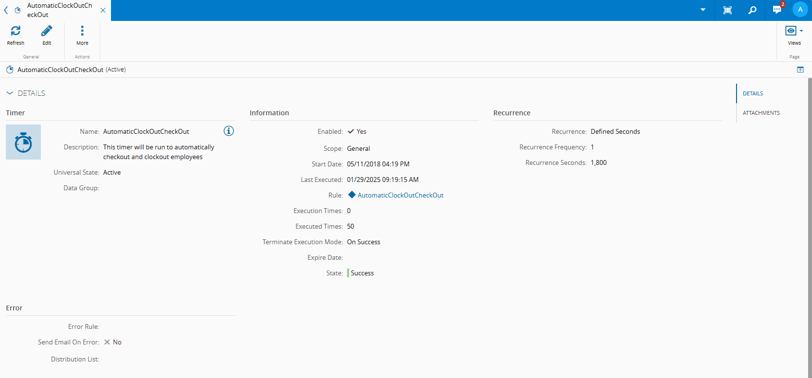 - On Success - Timer execution is terminated after Execution Times is reached only if the Rule is executed successfully.