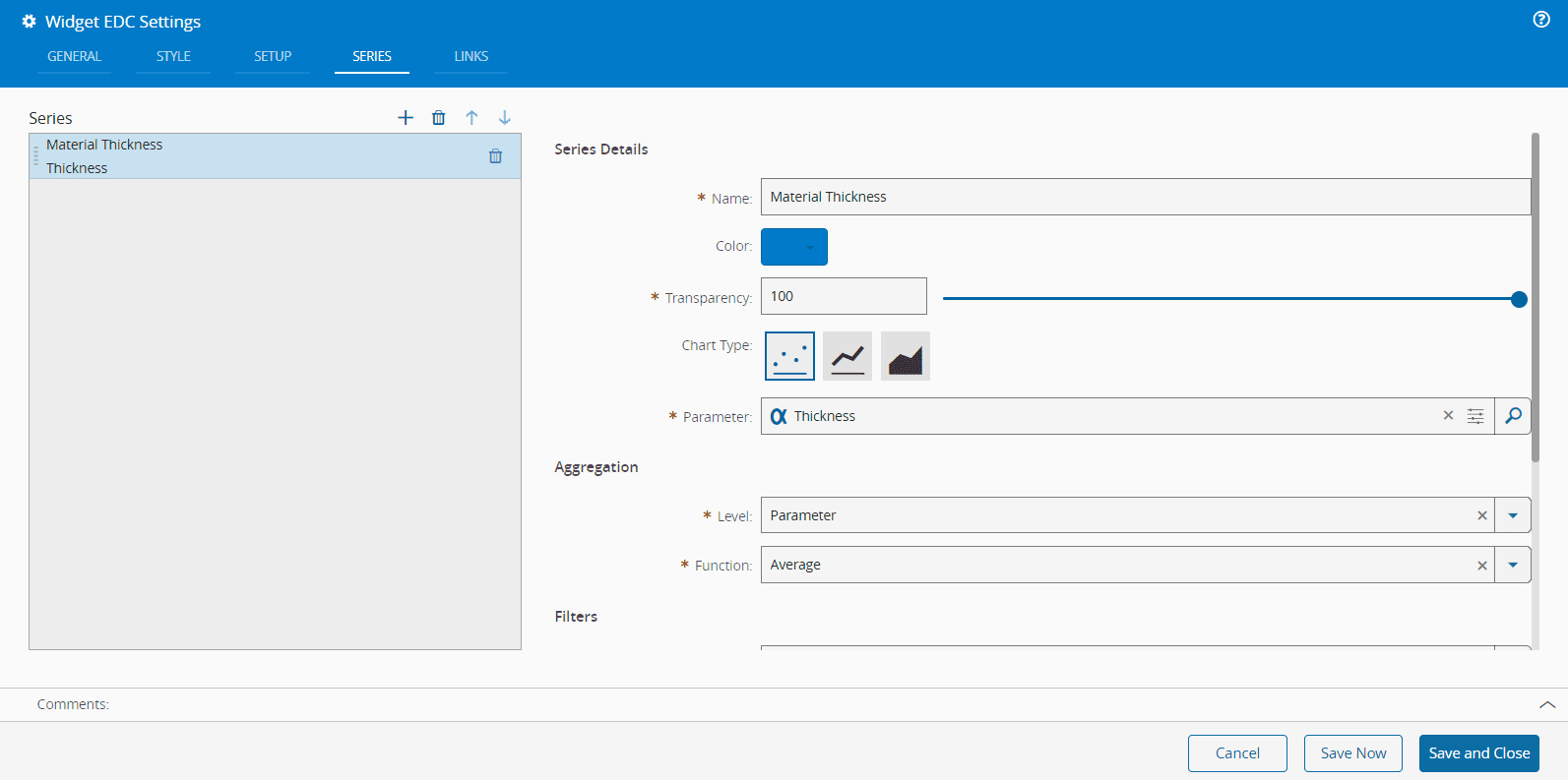 - Parameter - Choose a Parameter already configured in your MES system to be displayed in the EDC chart.