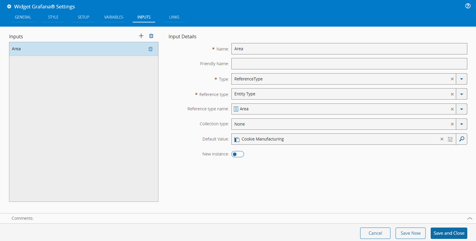 In the Inputs tab, you can inputs as needed. Note that the Name and Type are mandatory fields: