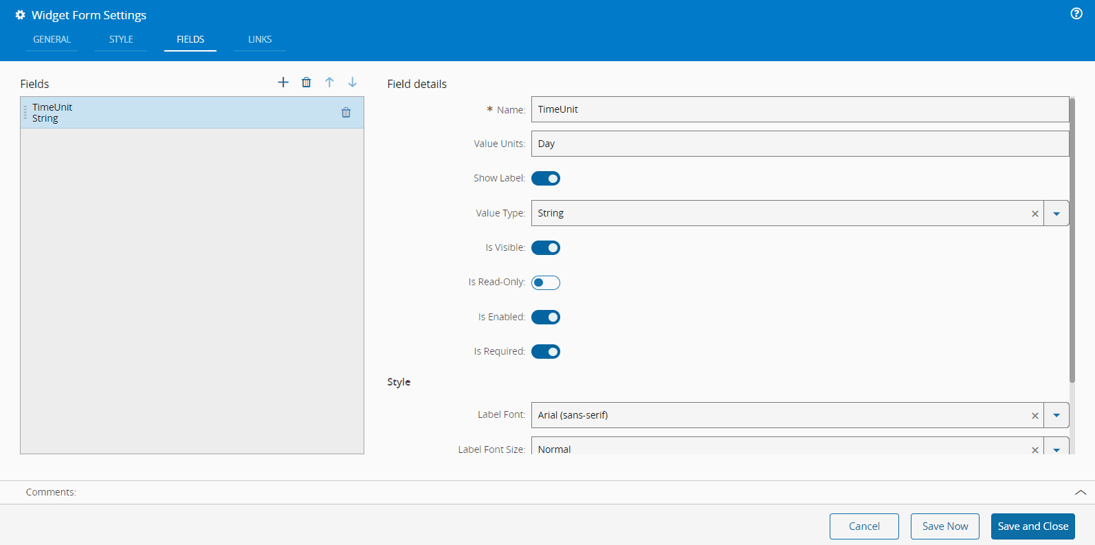 Go to the Fields tab, select to change the TimeUnit variable(Type: String), and then Save and Close: