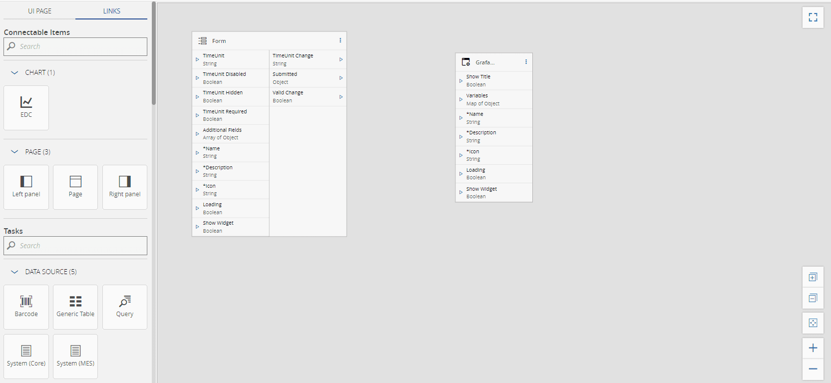 Select Links and drag and drop the Forms and Grafana widgets onto your page: