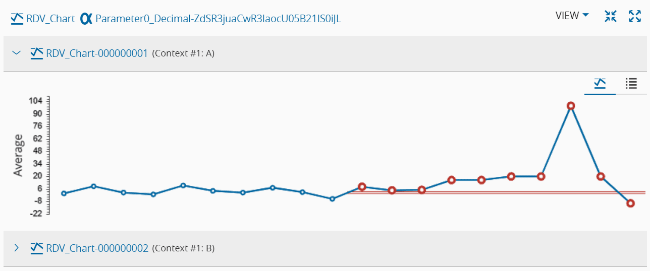 The SPC widget places a Chart in a UI Page by visually representing the Logical Charts associated to it along with information regarding the collected data and aggregations performed on it.