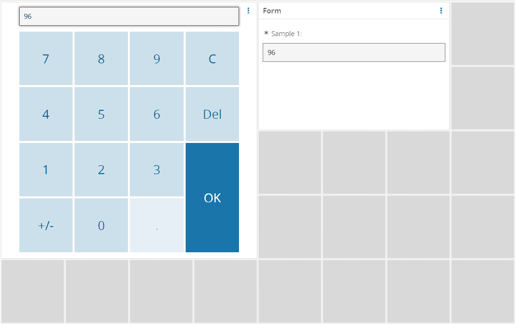 The Keypad widget provides an onscreen numeric keyboard to input values in an UI Page. An example of an UI Page using a Keypad widget is shown below.