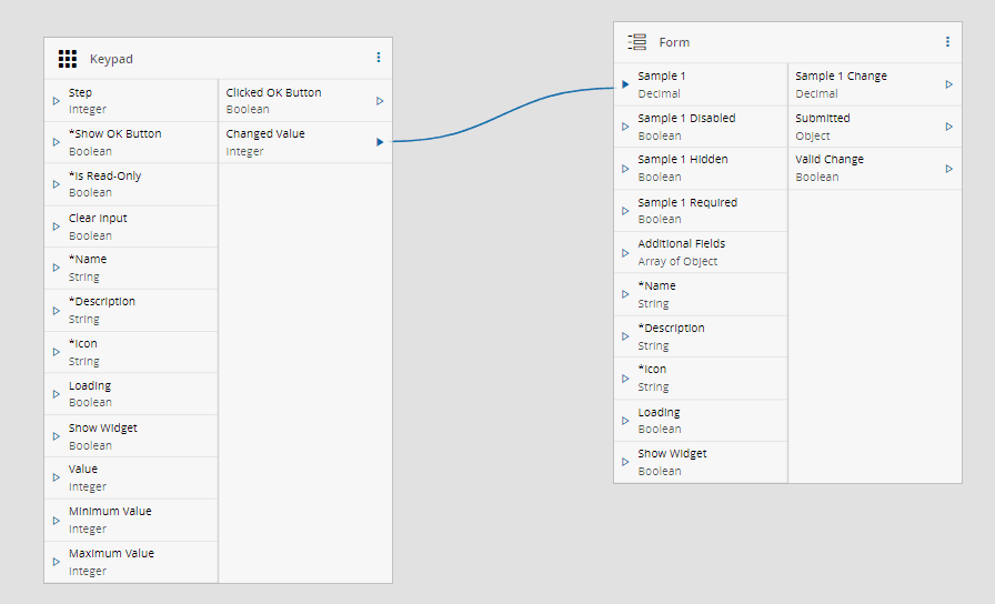 To help you take full advantage of the Keypad widget, the following scenario demonstrates how to connect a Keypad widget with a Form widget.