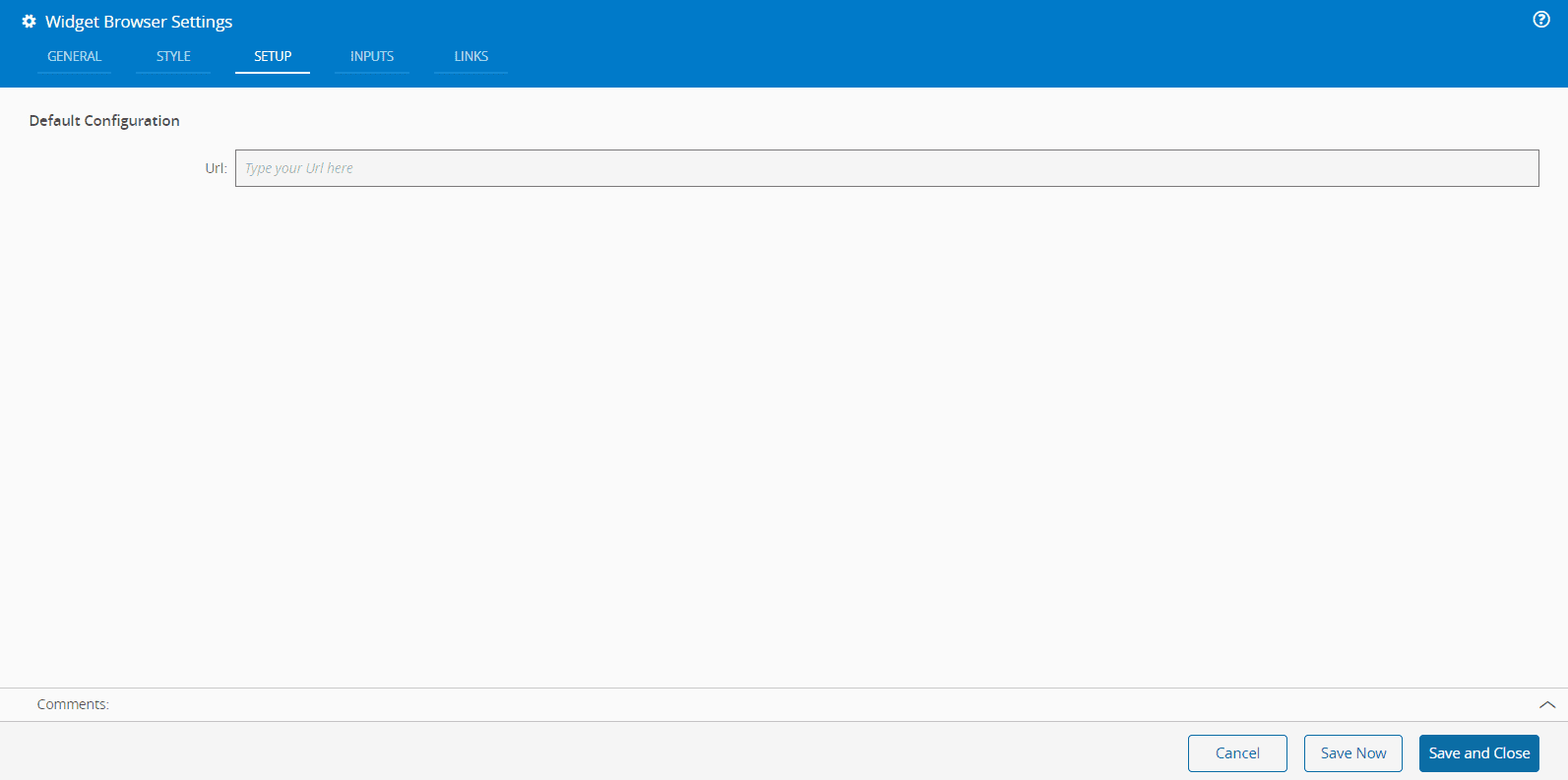 In the Setup tab, provide the Url to be displayed.
