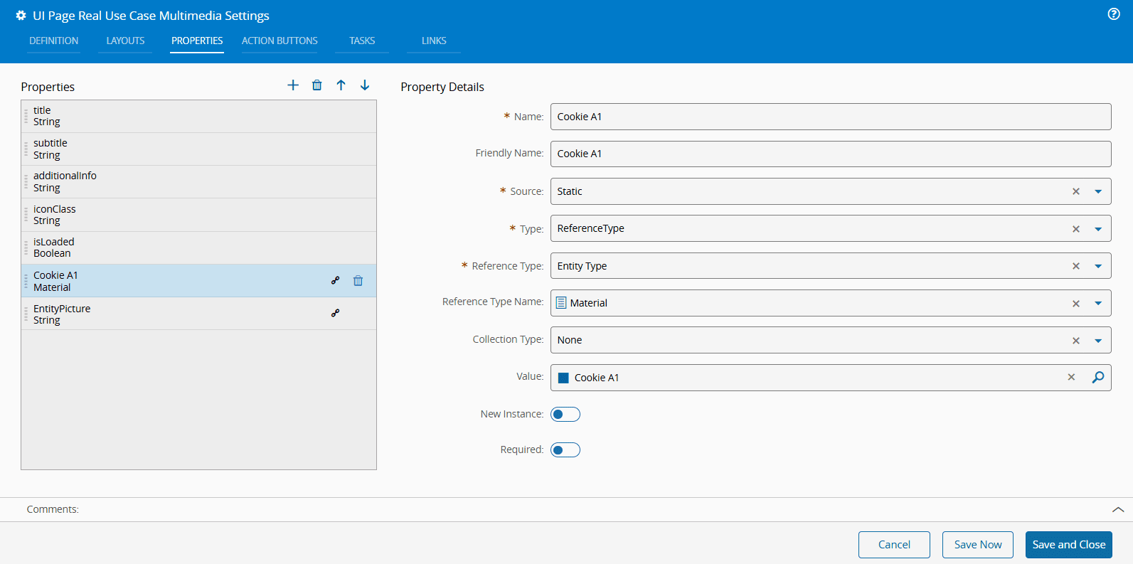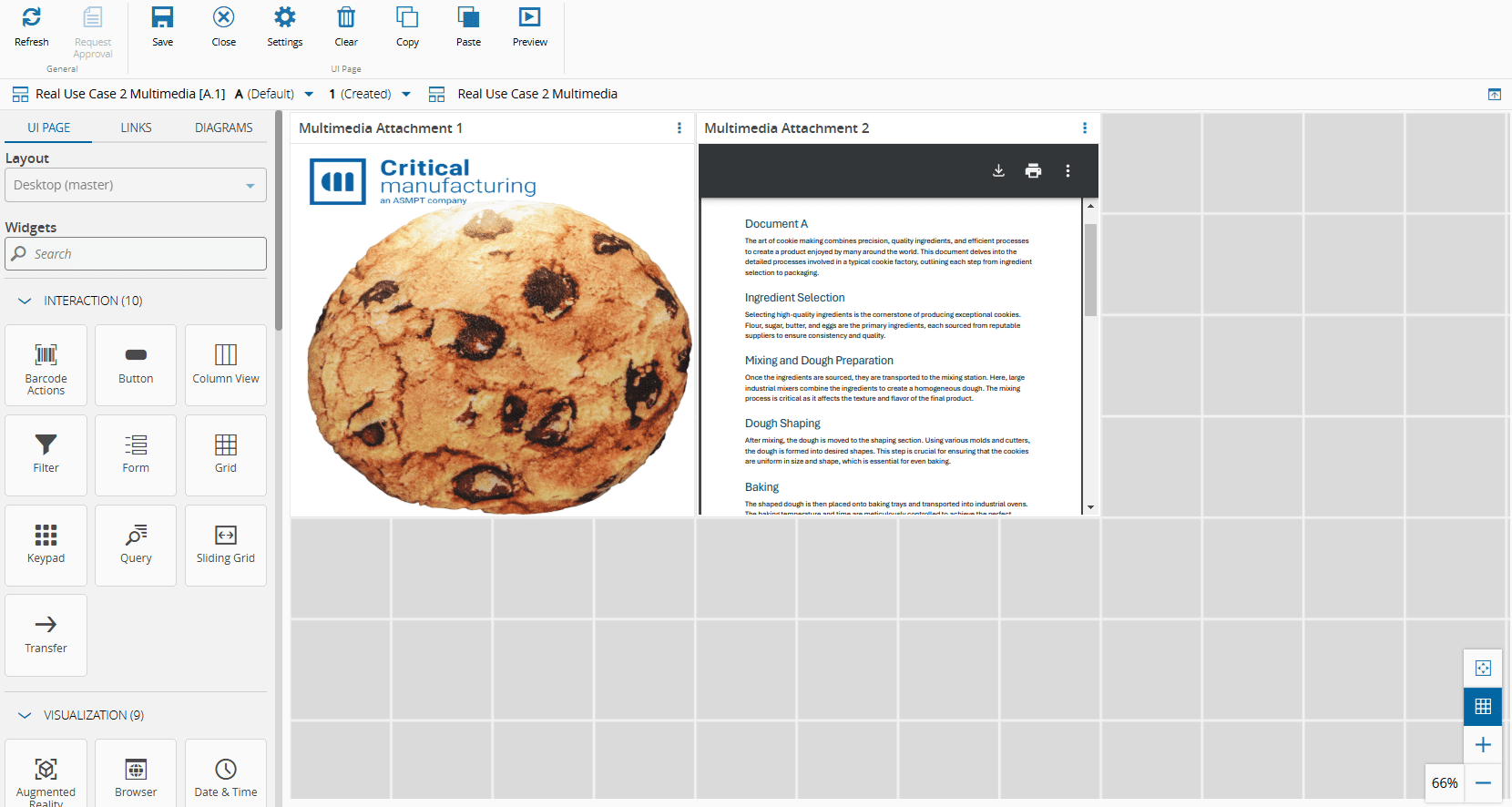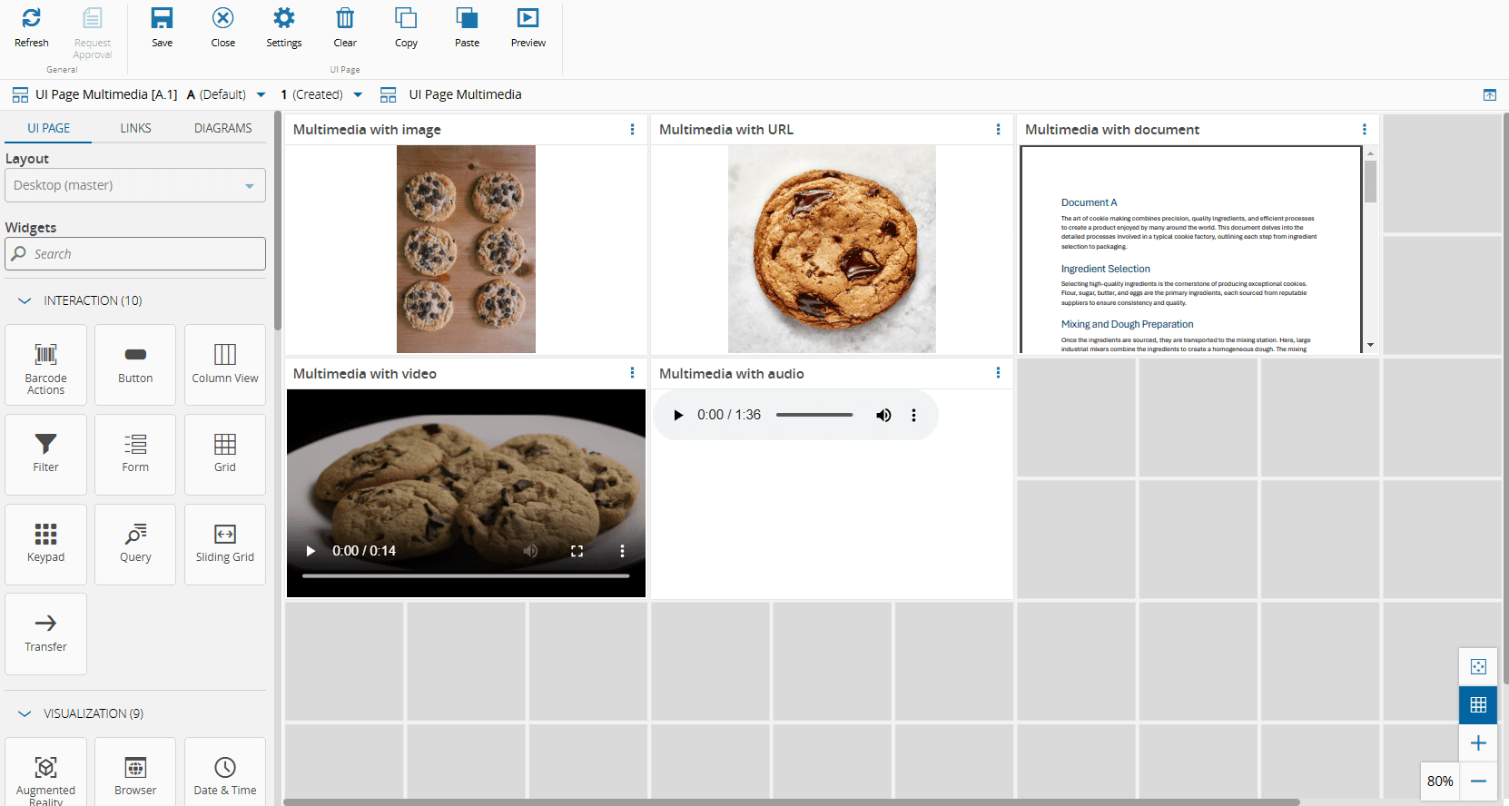 6. Add two Multimedia widgets to the UI Page to display the two attachments for Cookie A1.