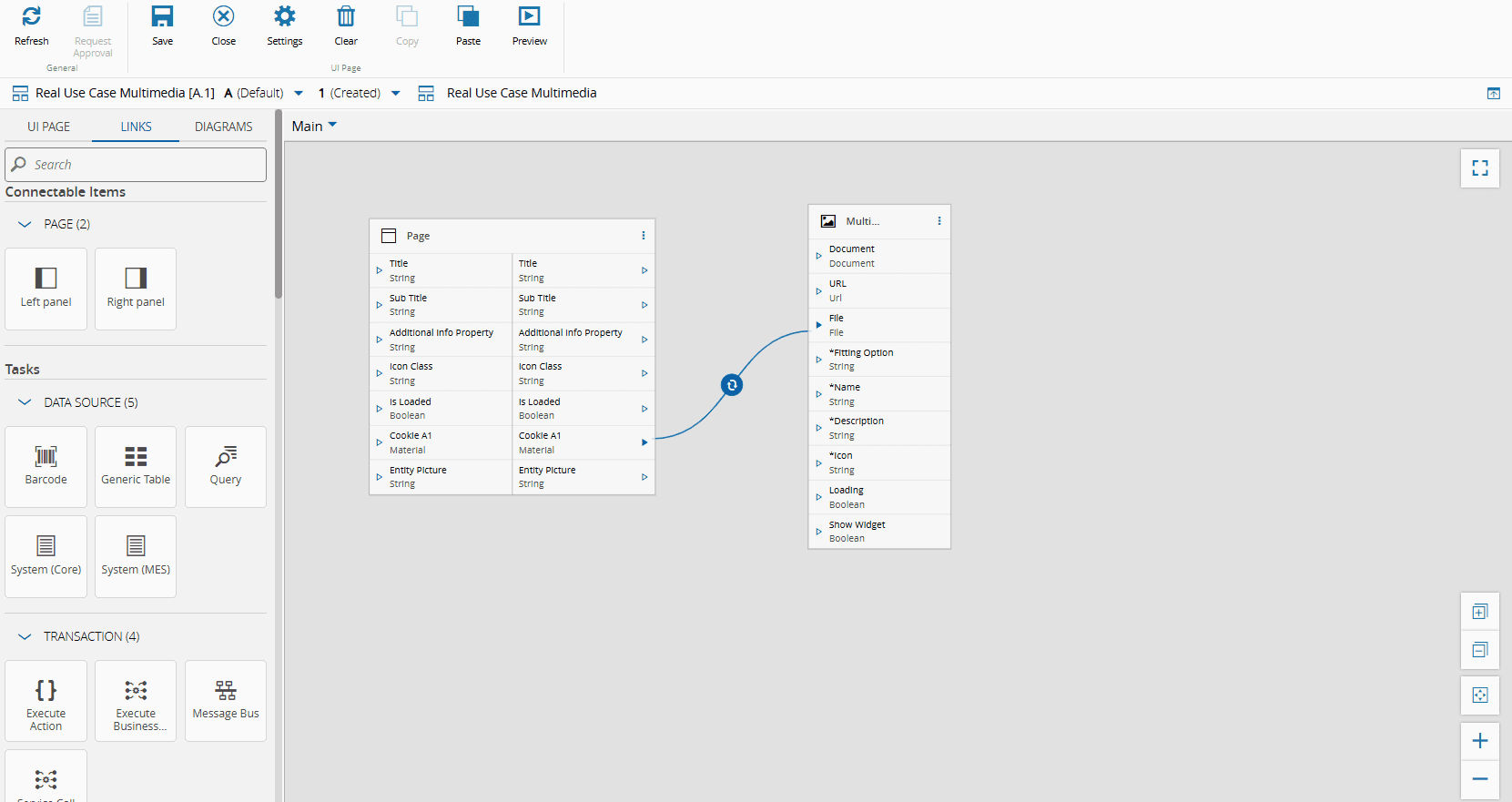 3. Add a Multimedia widget to the UI Page and create Links between the UI Page and the Multimedia widget, as shown below.
