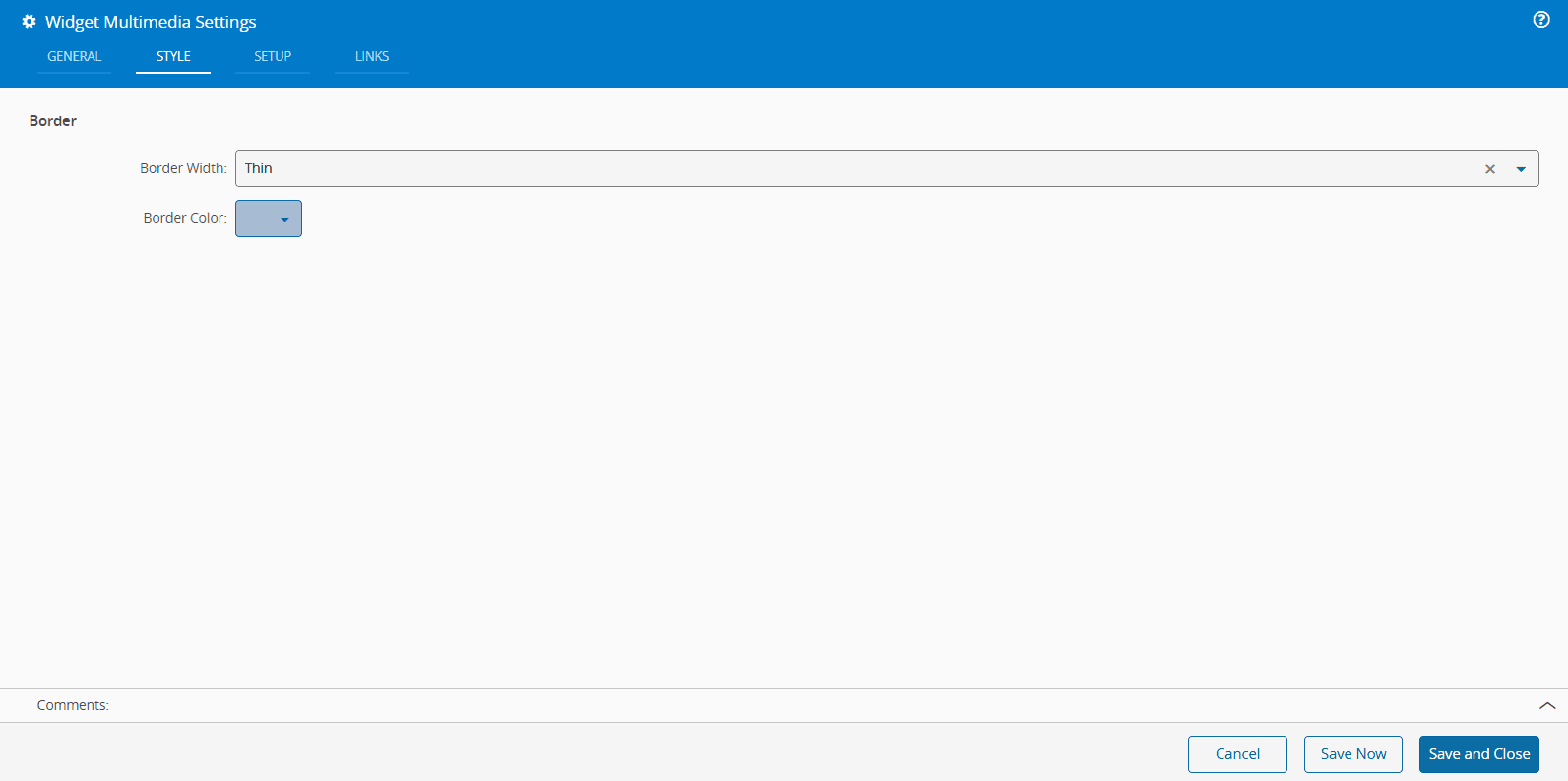 The Multimedia widget allows you to show any type of Document, including selecting the display mode for images and videos.