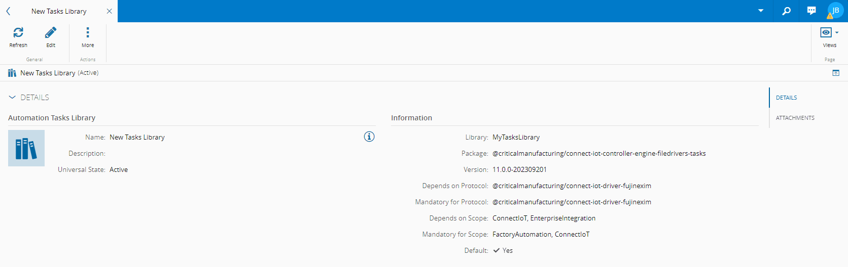 - Details - displays general information on the Automation Tasks Library.