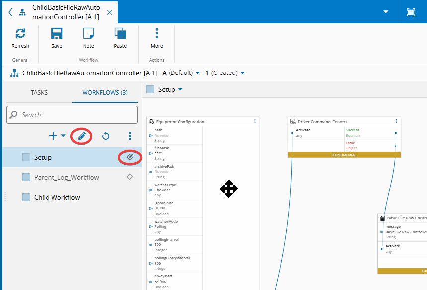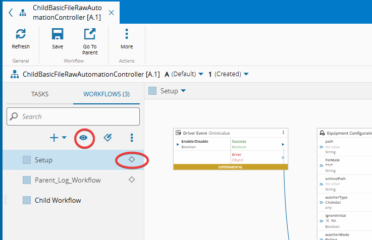 • Select a workflow from the parent controller