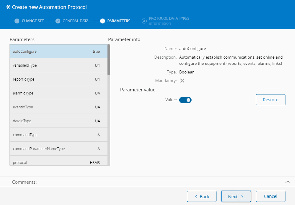 This operation is used to create a new Automation Protocol that defines communication specifications for equipment integration within the automation environment.