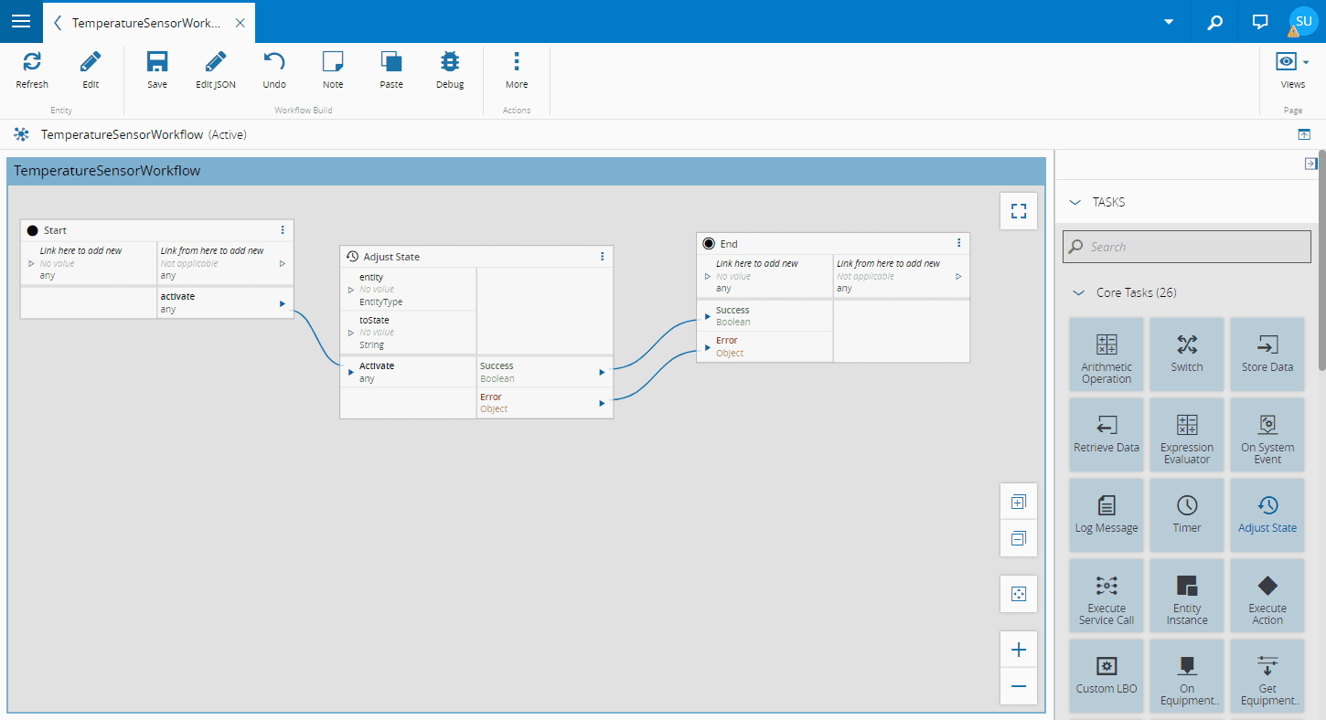 The Automation Workflow graph links outputs from one Task to the inputs of other Tasks. Each Workflow Task must implement a standard interface and it must contain: