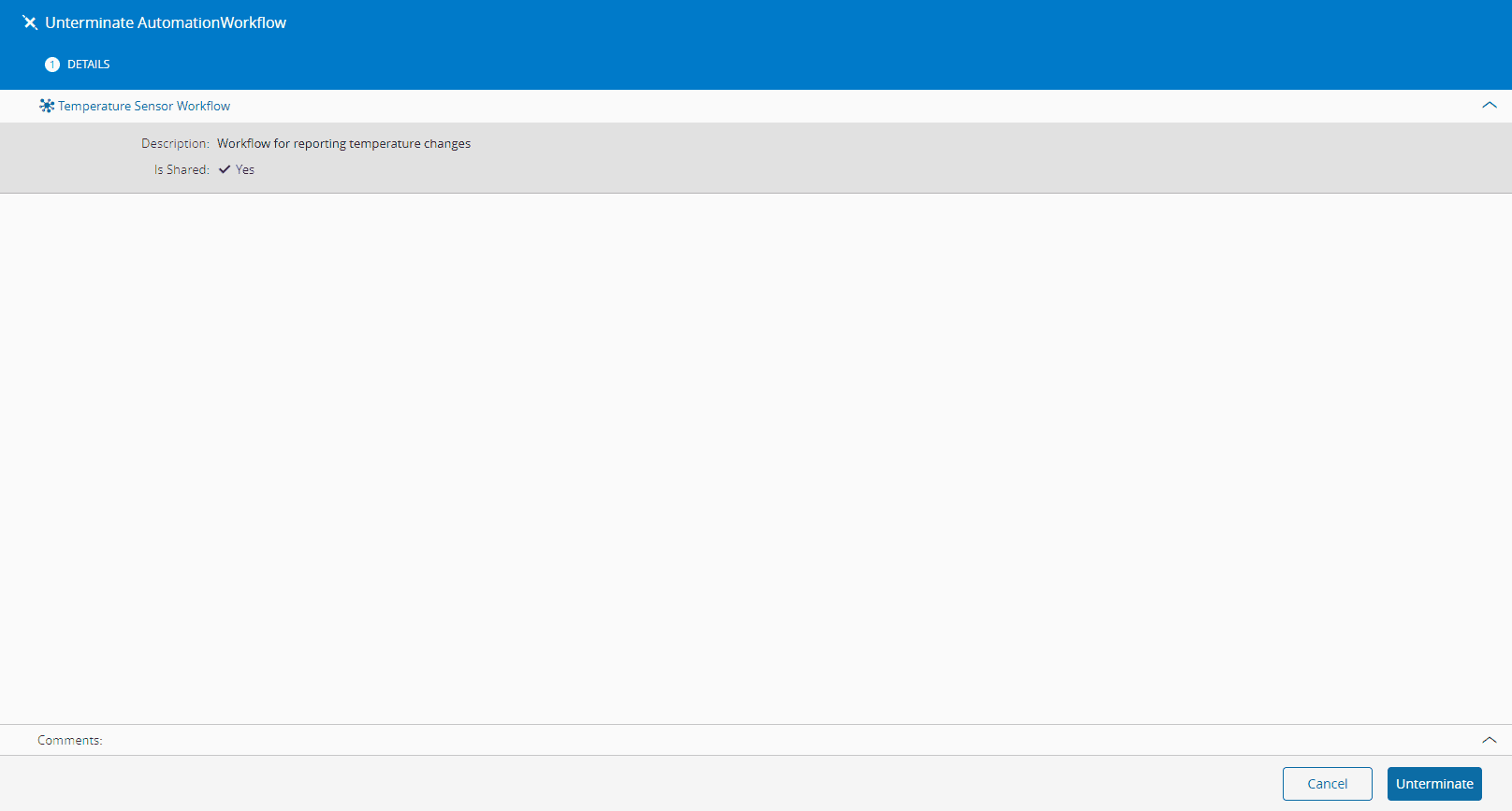 The Unterminate Automation Workflow wizard can be called from the Automation Workflow page within the Business Data Group.