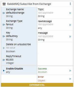 | Exchange Name | String | defaultExchange | The exchange Name to publish to. | |
