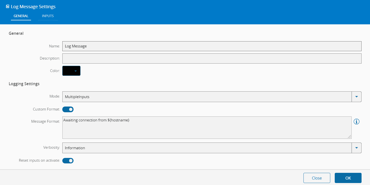 If only the Activate input has a link, the default message defined will be the one logged.