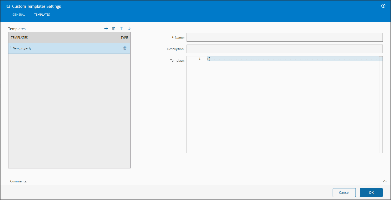 The Custom Templates task is used to add properties, events and commands to a Driver Definition through JSON content.