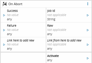 The On Abort task must be used with the Worker Manager, which initiates it through the onAbort event. After the event is received, custom logic can be inserted in the workflow, and then connected to the Success or Failure inputs to determine the outcome.