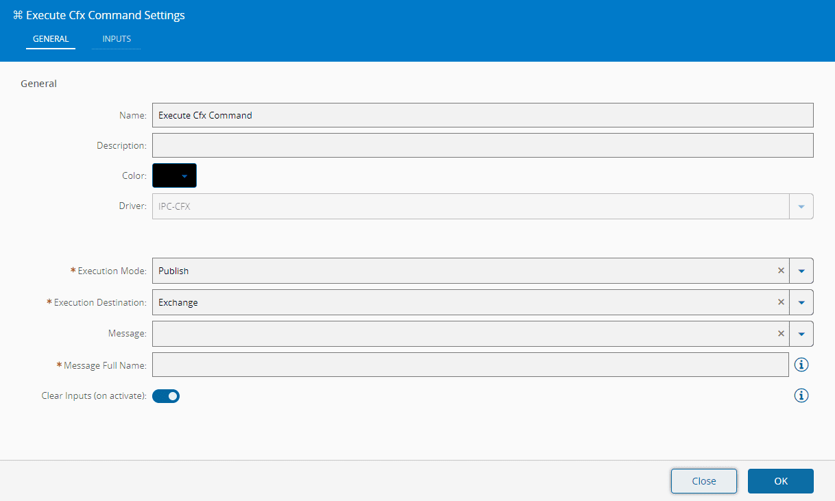 This Task executes command CFX messages of a specific type (which can be configured in the Task's settings) and waits for the reply.