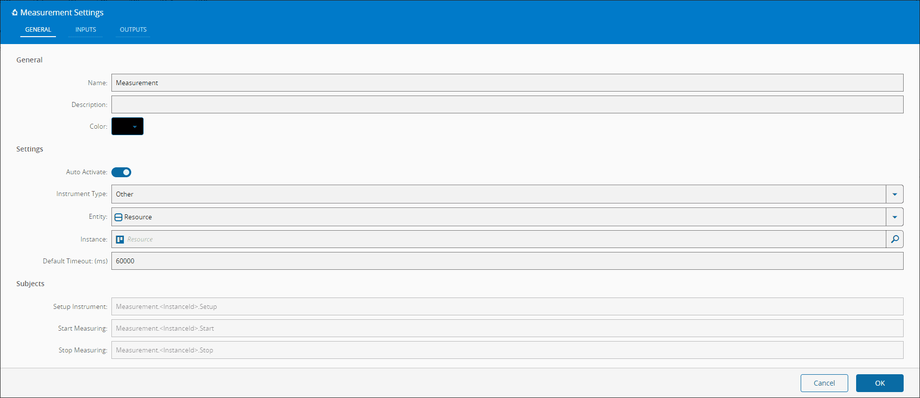 AutoActivate Boolean true Auto subscribes to the subjects specified in the Setup Instrument, Start Measuring, Stop Measuring.