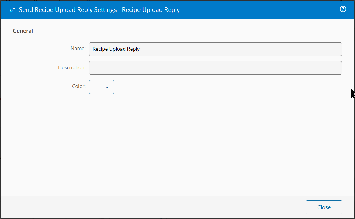 When activated, this task sends a reply back to the MES in response to a recipe upload request. If Failure Reason is provided, it is sent as the failure content; otherwise, the MES interprets the reply as a successful upload.