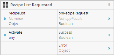 | onRecipeRequest | Object | Emits true when the MES sends a request for the recipe list |