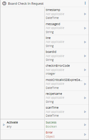 The Board Check In Request task sends the CheckIn Event to the MES system when a board is entering the line. This event awaits for the reply BoardCheckInRequestResult.