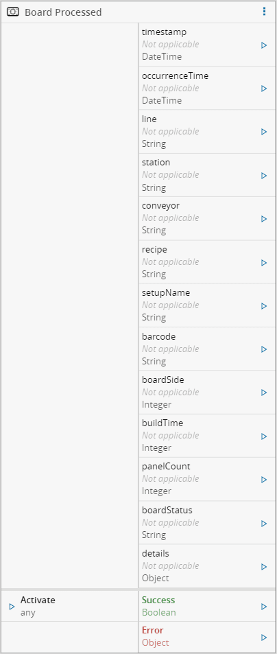 The Board Processed task contains the data of one board being produced by one station.