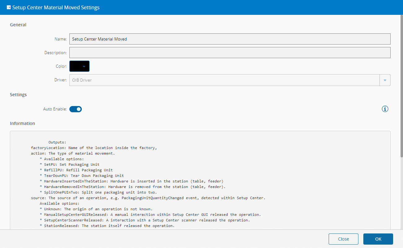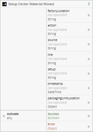 The Setup Center Material Moved task informs when a packaging unit chain was moved.