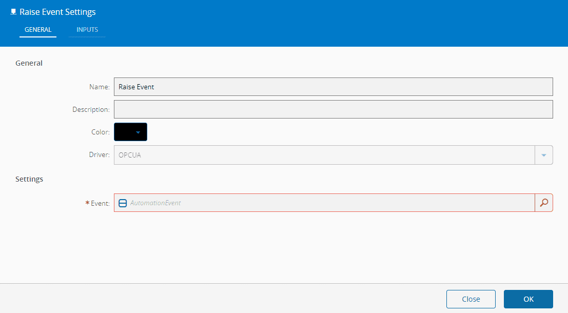 This task raises an OPC UA event. To be used with OPC UA driver in Server mode.