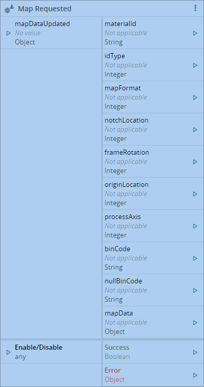 When equipment issues an S12F3, the outputs are emitted and the task waits for the mapDataUpdated input to be filled with the data of the map. The expected structure is similar to the following example:
