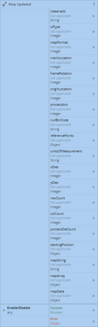 This task automatically handles the S12F1, S12F5 and S12F9 messages when sent from the equipment in order to receive the updated map information. When all data is received, all outputs are emitted with the corresponding data for processing