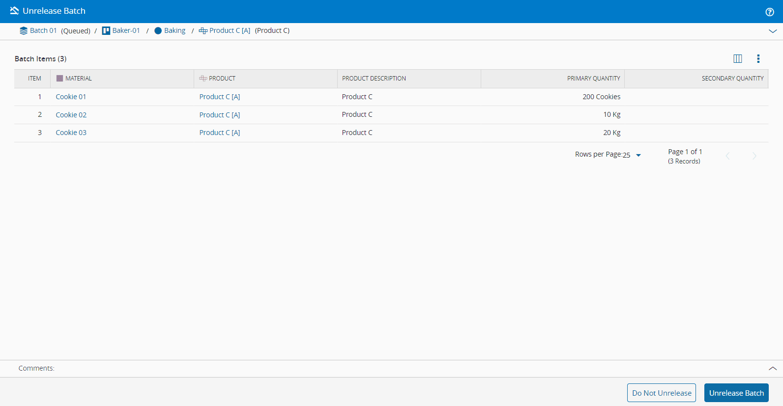 This operation is used to Unrelease a previously released Batch. This is typically to correct situations where the Batch was released by mistake, or when you need to make corrections to the Batch composition.