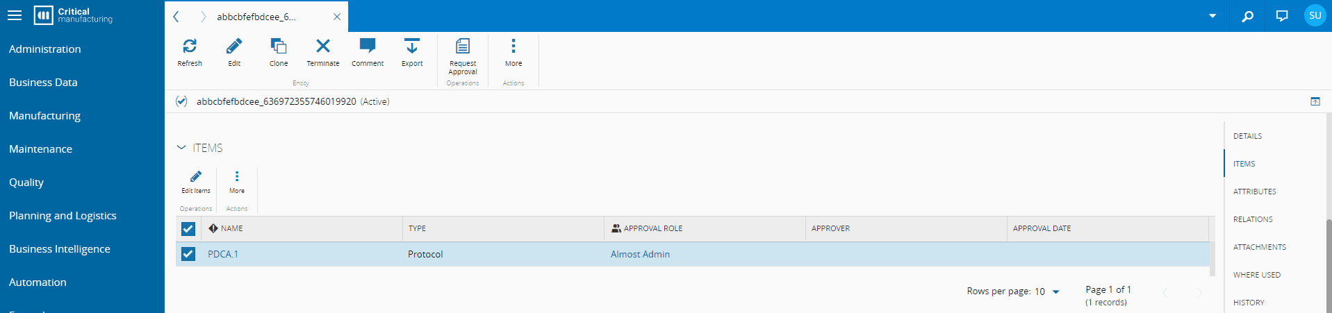 If the Change Set is still in the "Created" state, it is possible to click Edit to modify these Change Set Items concerning the "Approval Role".