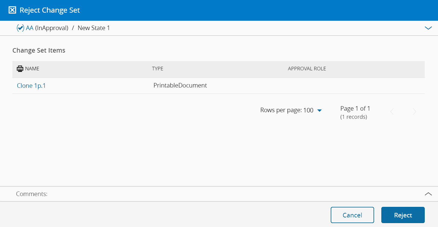 - Click Reject to complete the operation and the system will confirm that the Change Set has been rejected.