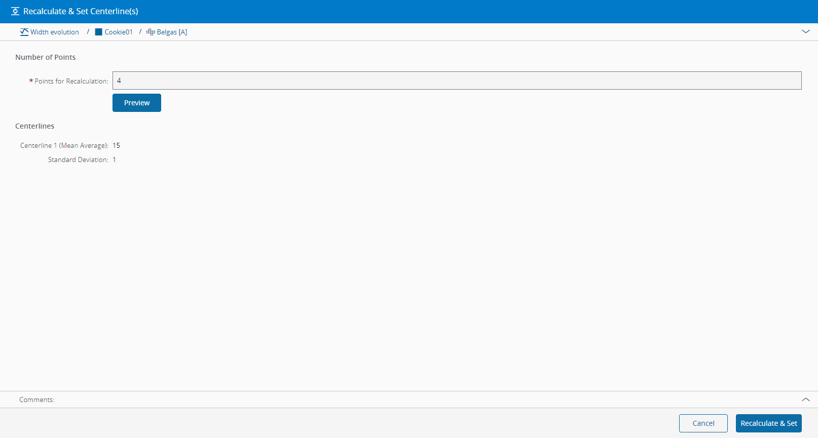 - Optionally, modify the number of points to take into account for recalculation - by default, it uses the Chart calculation data point size.