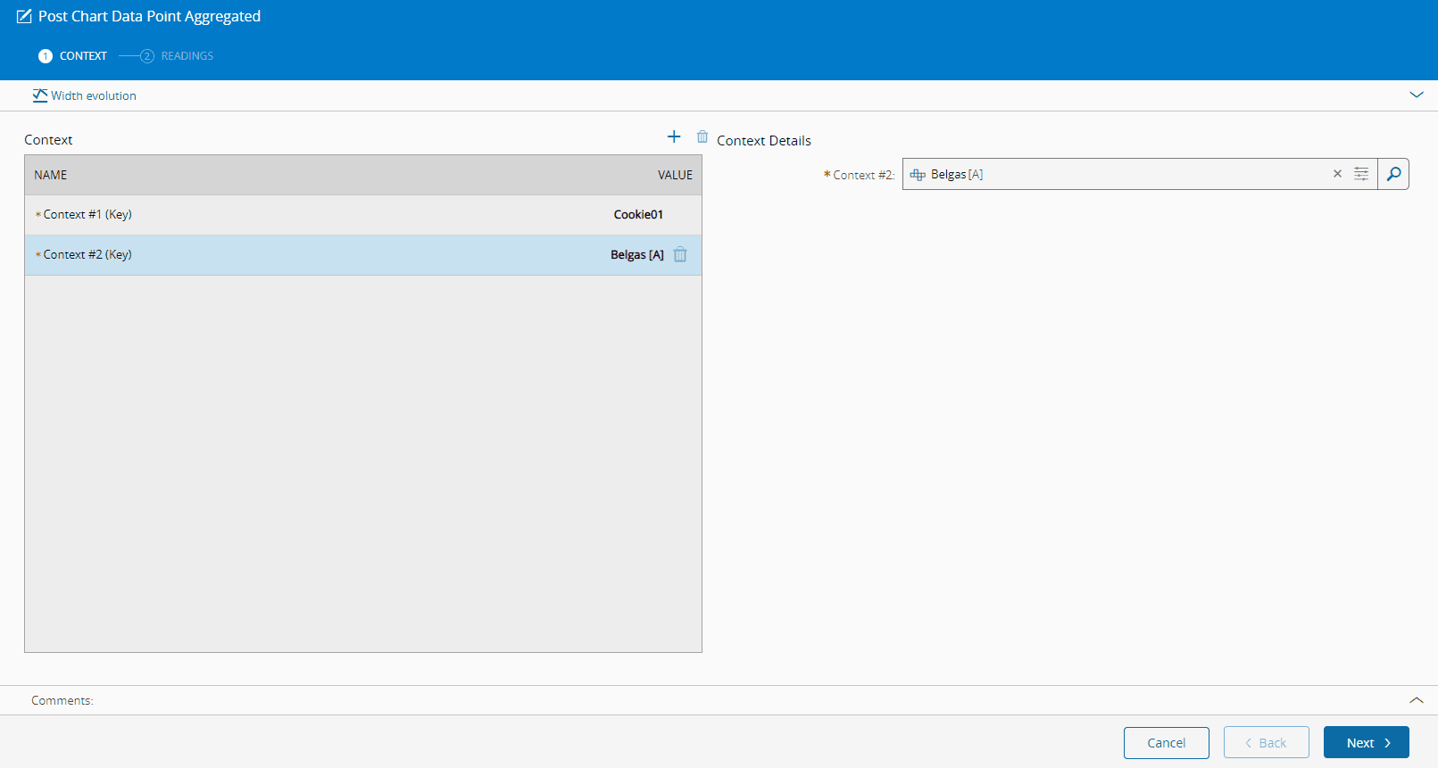 - Enter the Context Details - Material and Product for this example.