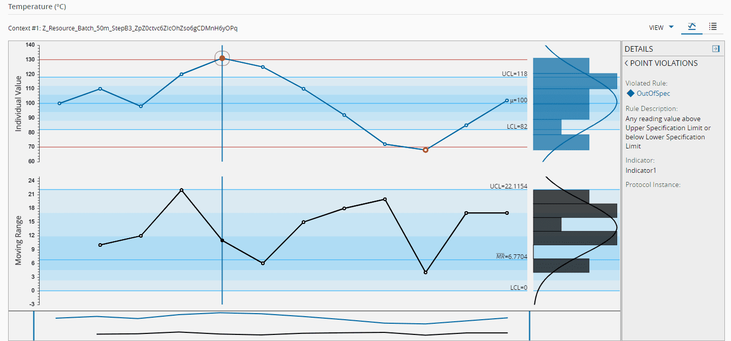 Any reading above the upper specification limit (if defined) or below the lower specification limit (if defined).