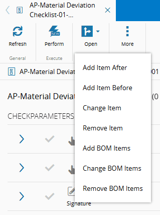 false. Additionally, the base Checklist Instance Item must be Not Started if the new Checklist Item is to be added Before. - If the Deviation Type is Change BOM Item, Remove BOM Item or Add BOM Item: