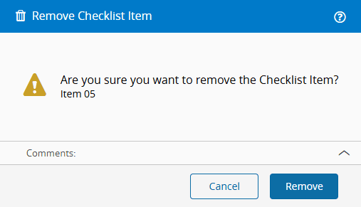 If you remove (Remove Item) the selected Checklist Instance Item, check the information, and select Remove: