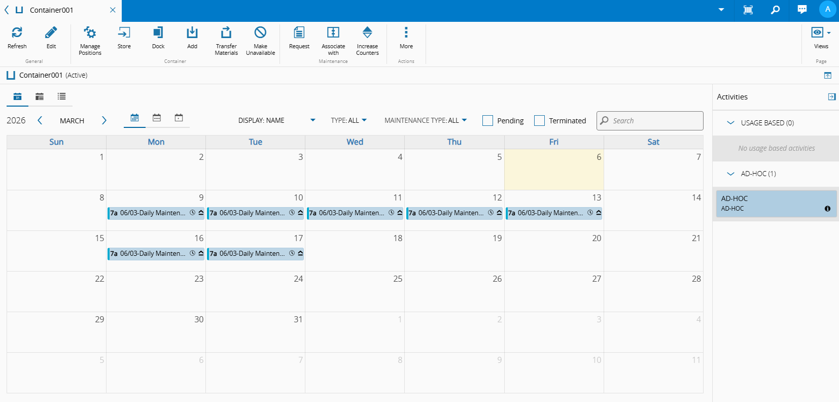 The Container page displays general information on the specific Container. In addition it enables the user to perform all the operations that can be performed on a specific Container.