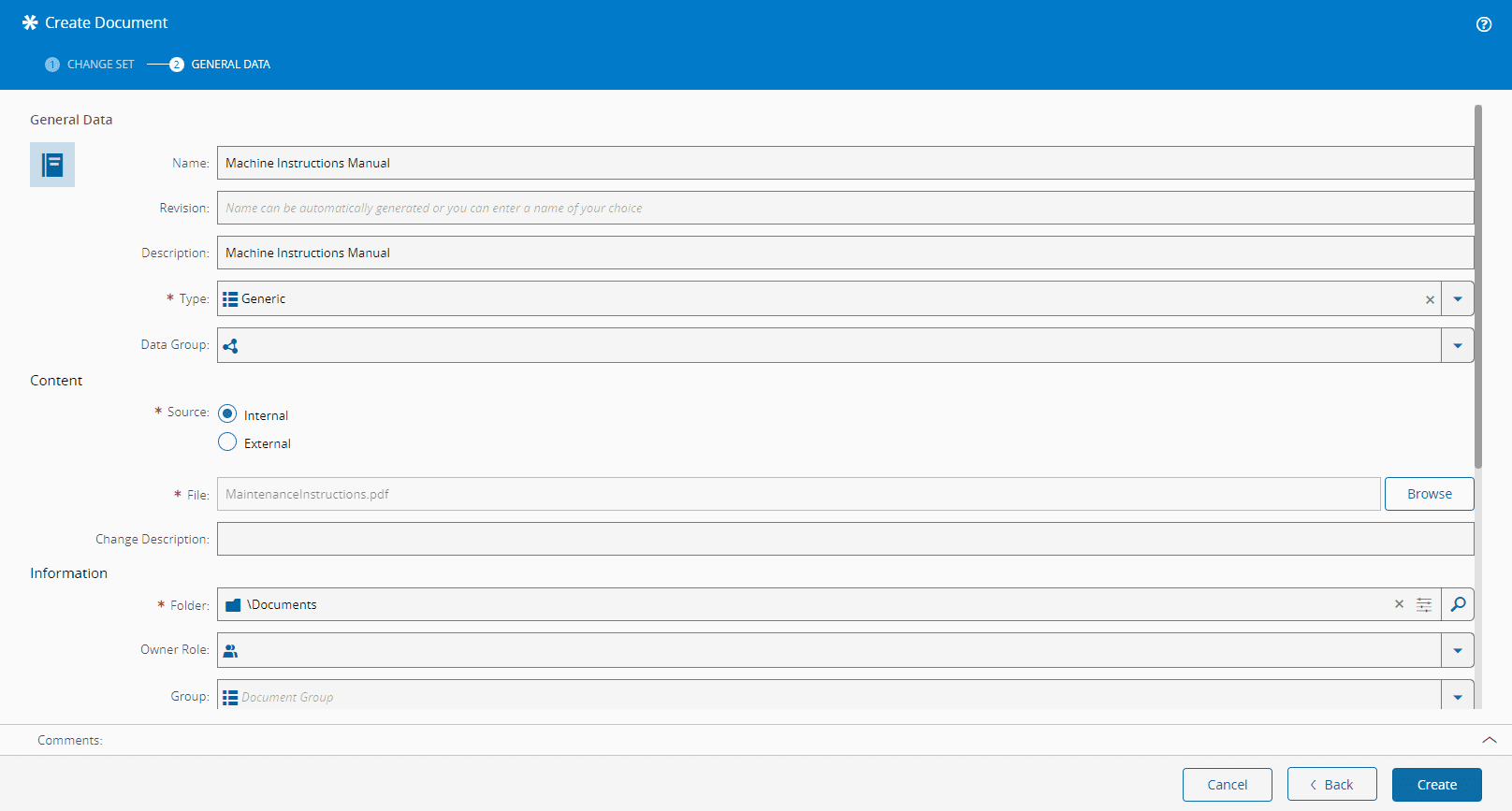 Optionally, select an Owner Role. If an Owner Role is defined, only users that belong to this role are able to make modifications to all the versions of the Document.