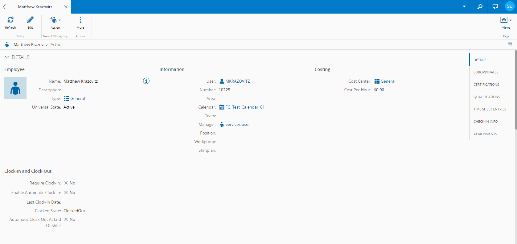 • Subordinates - displays information on the other Employee(s) that are currently assigned to the Employee as subordinates.
