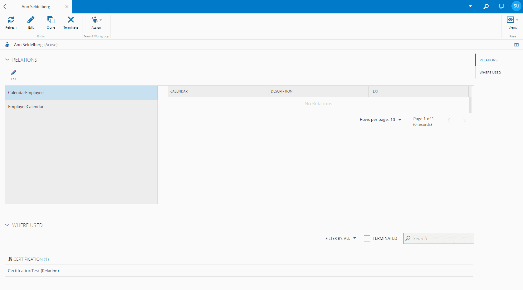 • Relations - displays the existing Relations between the Employee and other entities and enables the user to edit them. For more information on Relations, visit the section Relations.
