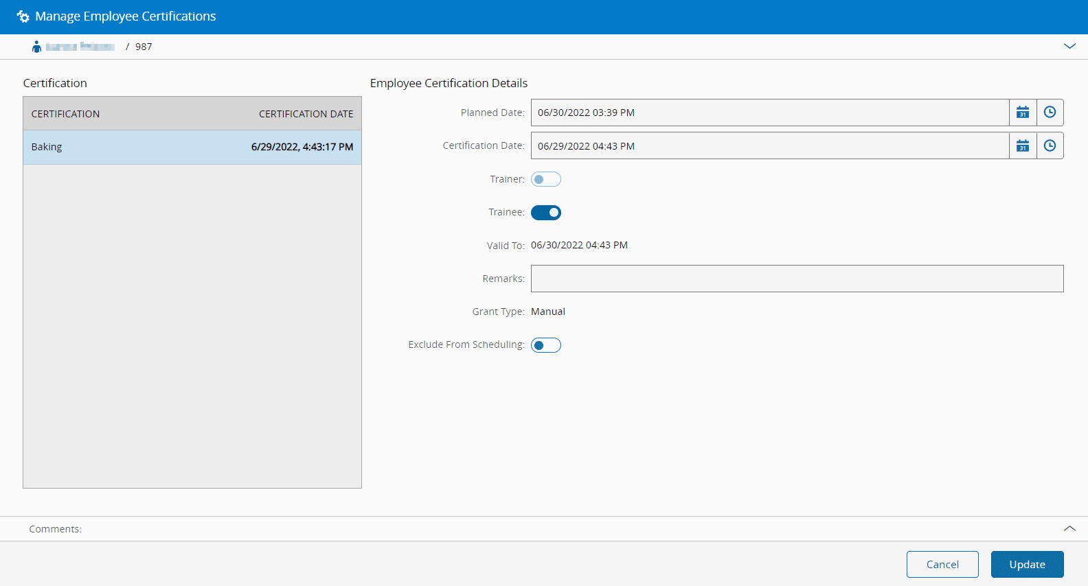 - If the State of the Certification is Active you can edit the Certification Date and set if the Employee is a Trainer or Trainee.