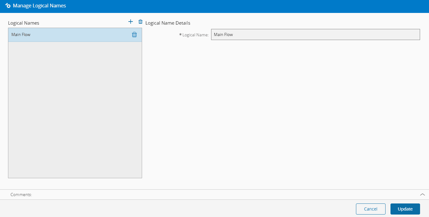 1. Navigate to the Logical Names section in the main Flow details page and press the Manage button
