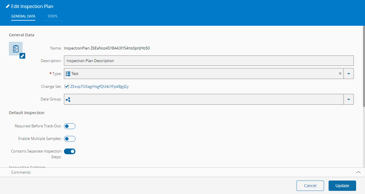 The Edit Inspection Plan wizard can be called from the Inspection Plan page within the Business Data Group.