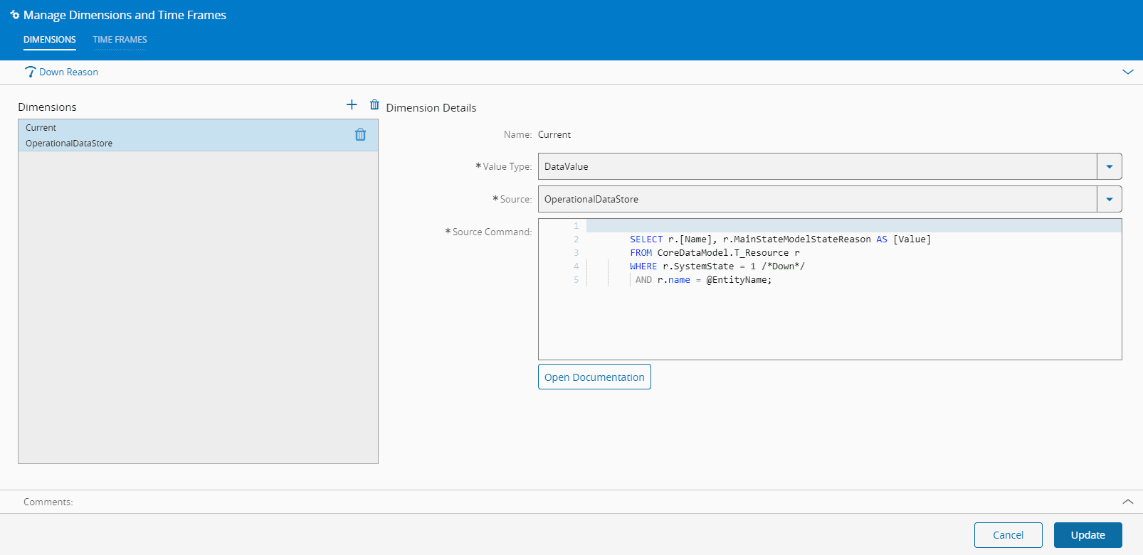 This operation is used to modify the KPI's dimensions and time frames, i.e, the scope and time variations of the specific KPI.
